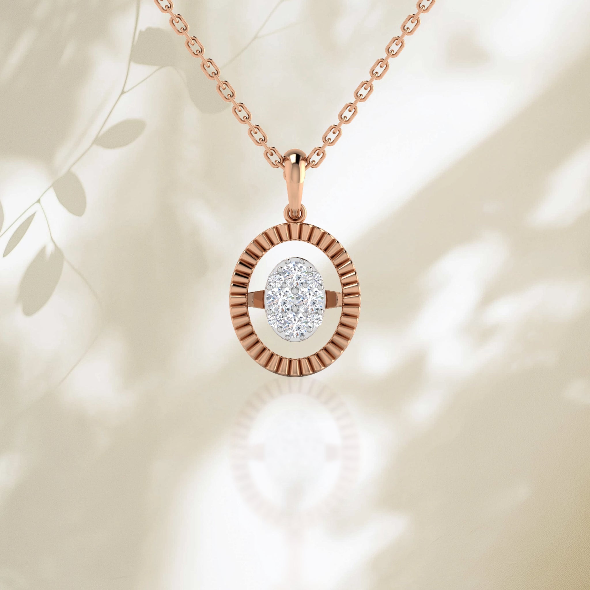 Oval solitaire textured necklace
